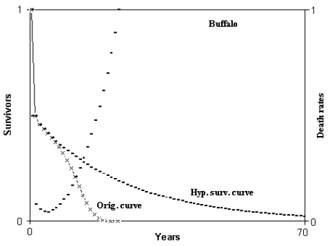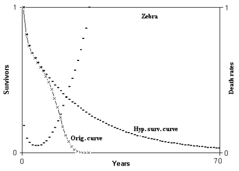 (survival curve of type II and III [Pianka 1970]), and it is verified