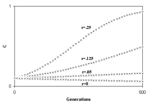 does not happen and/or when the turnover of generations is swift enough, C is not favoured and